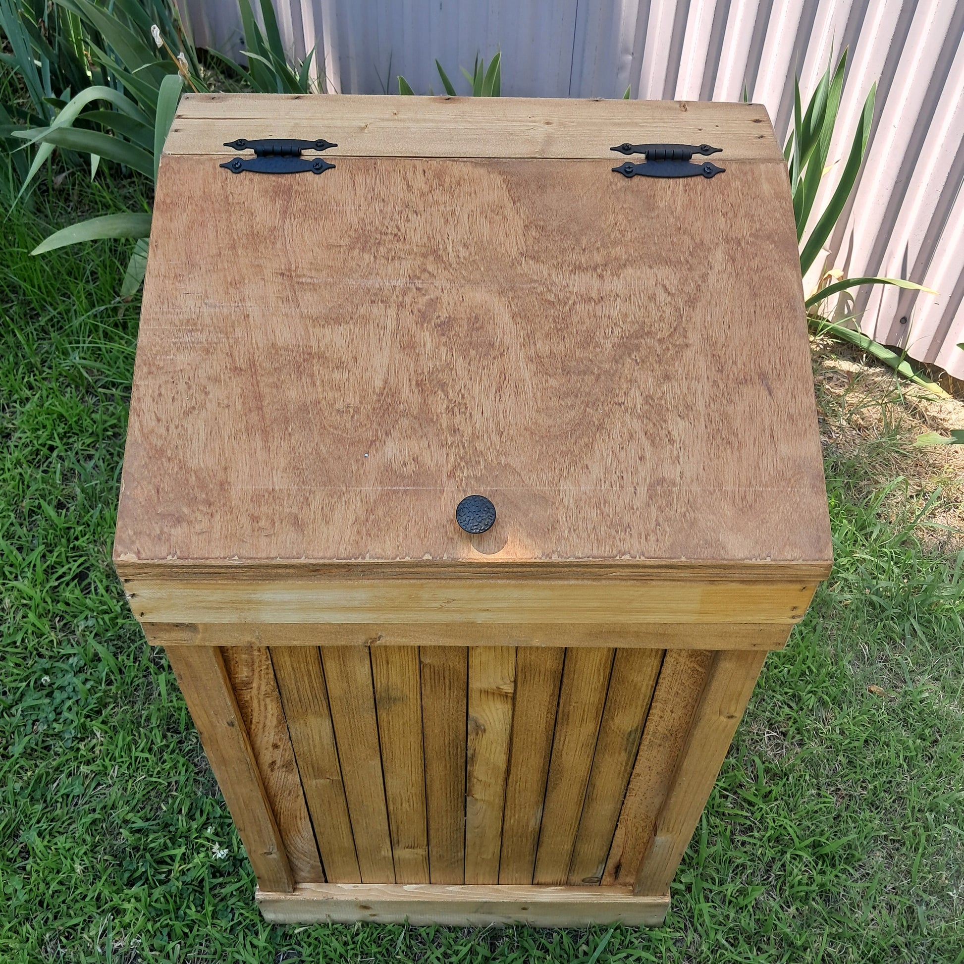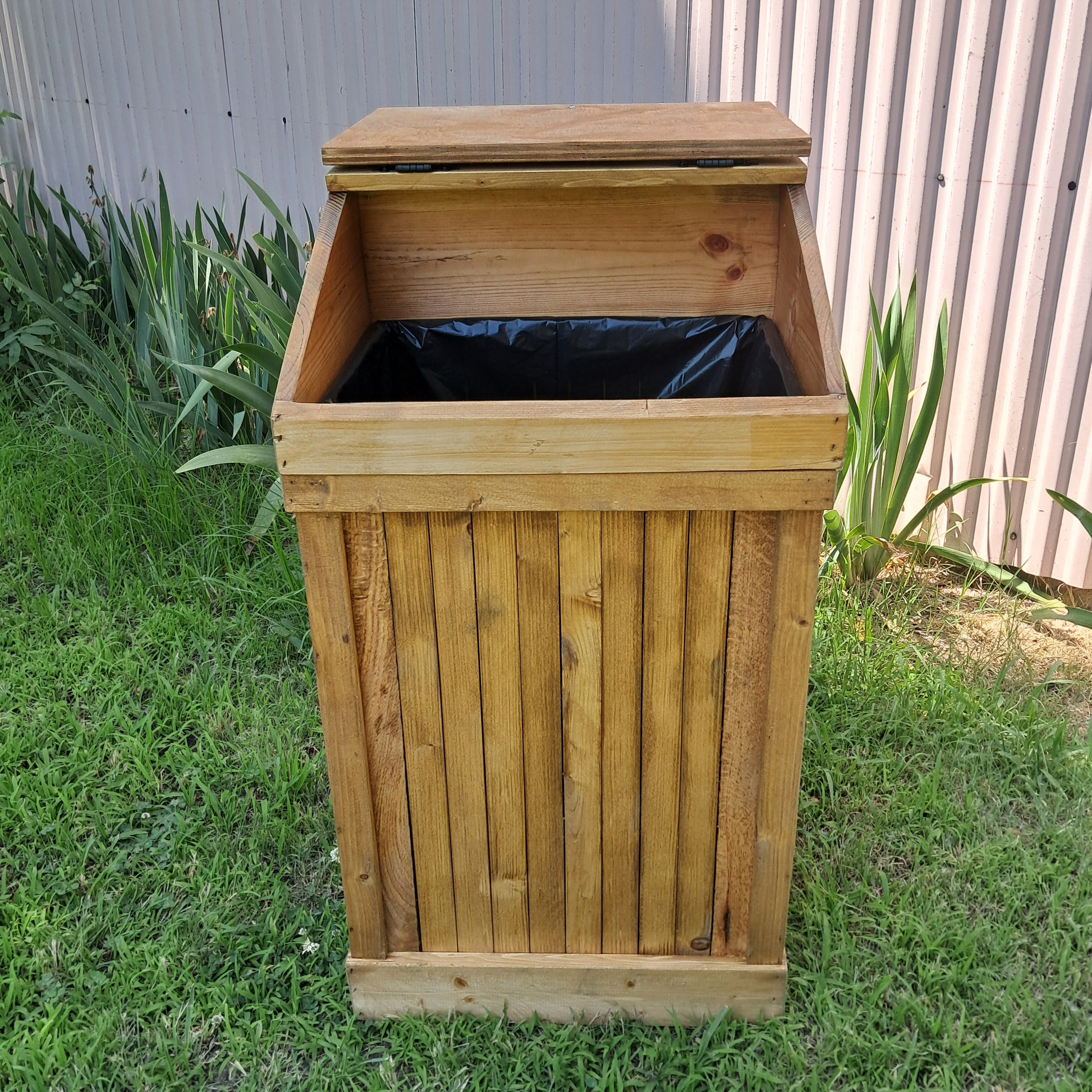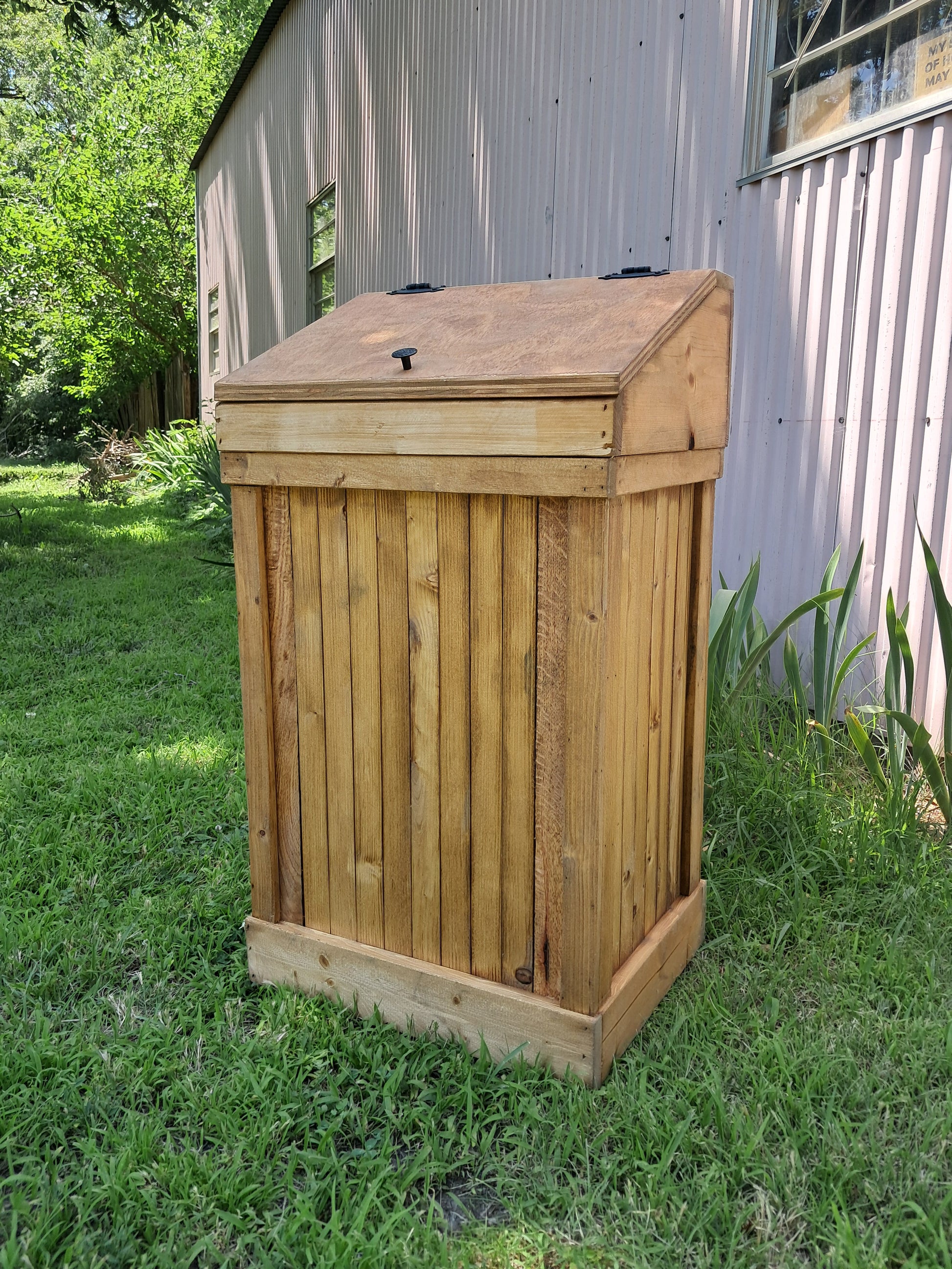 This Wood Trash Bin is completely Handmade in our shop using Reclaimed Wood.