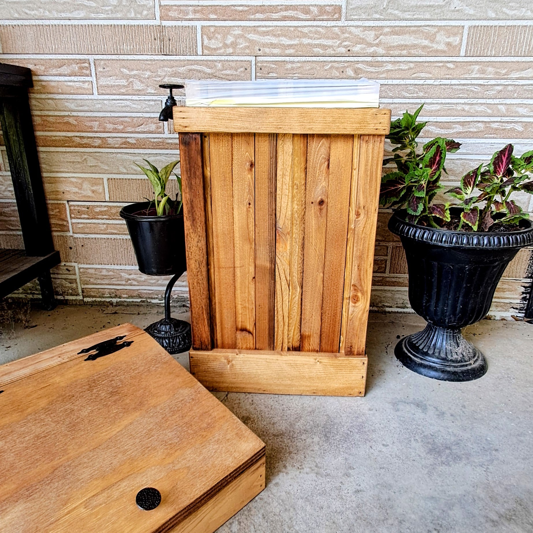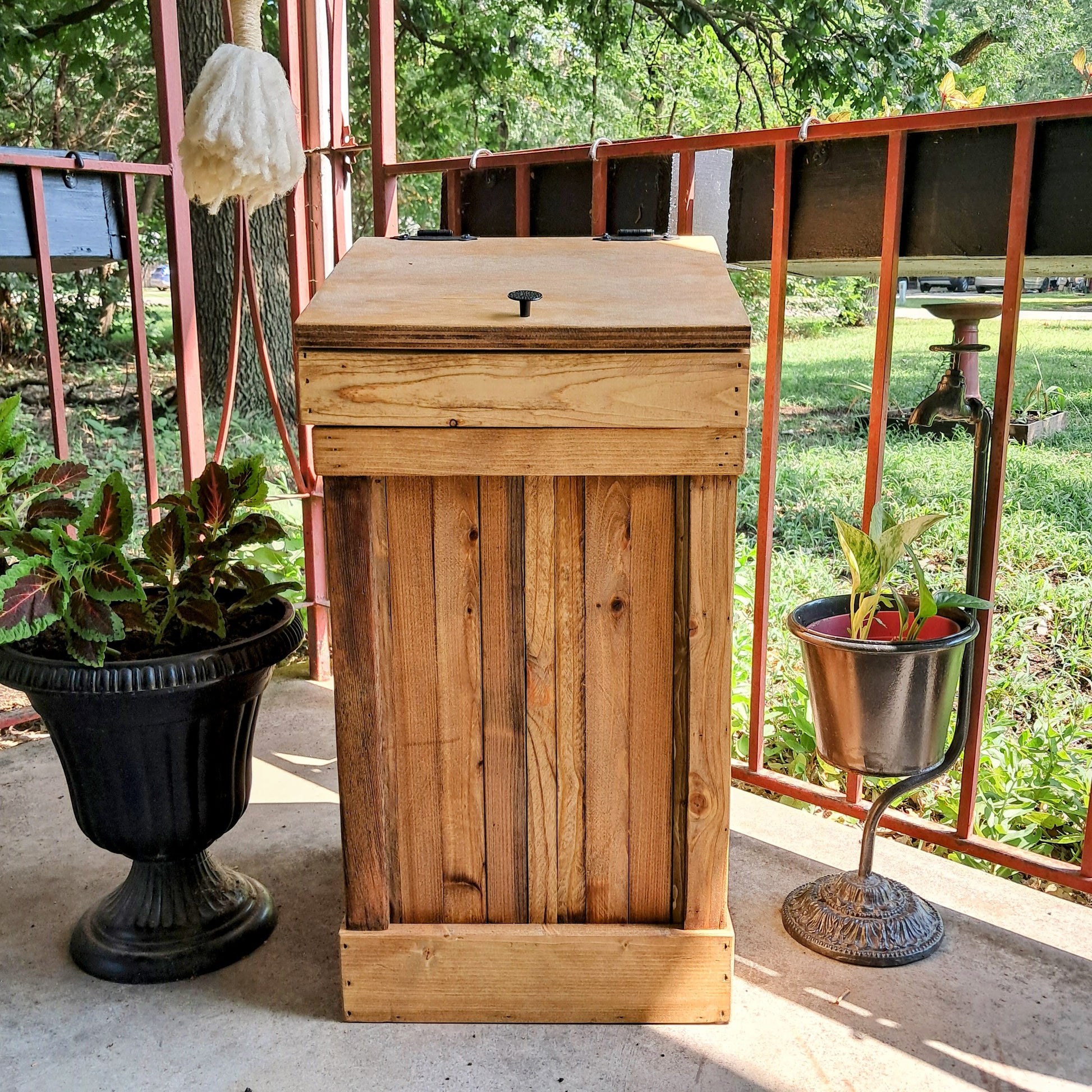 This Wood Trash Bin is completely Handmade in our shop using Reclaimed Wood.
